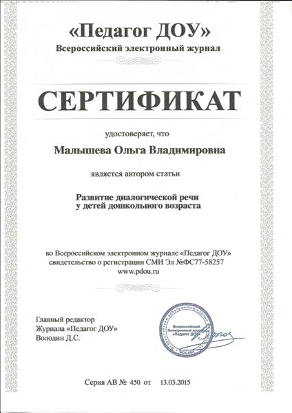 "Развитие диалогической речи у детей дошкольного возраста" // www.pdou.ru, 2015. 0 c.